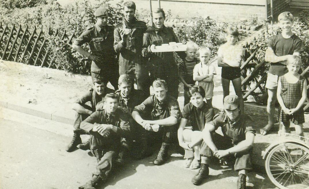 3.e peloton op de koffie bij Uschi in Duitsland1968, ik op de voorgrond ,nog een jaar mee gecorrespondeerd.