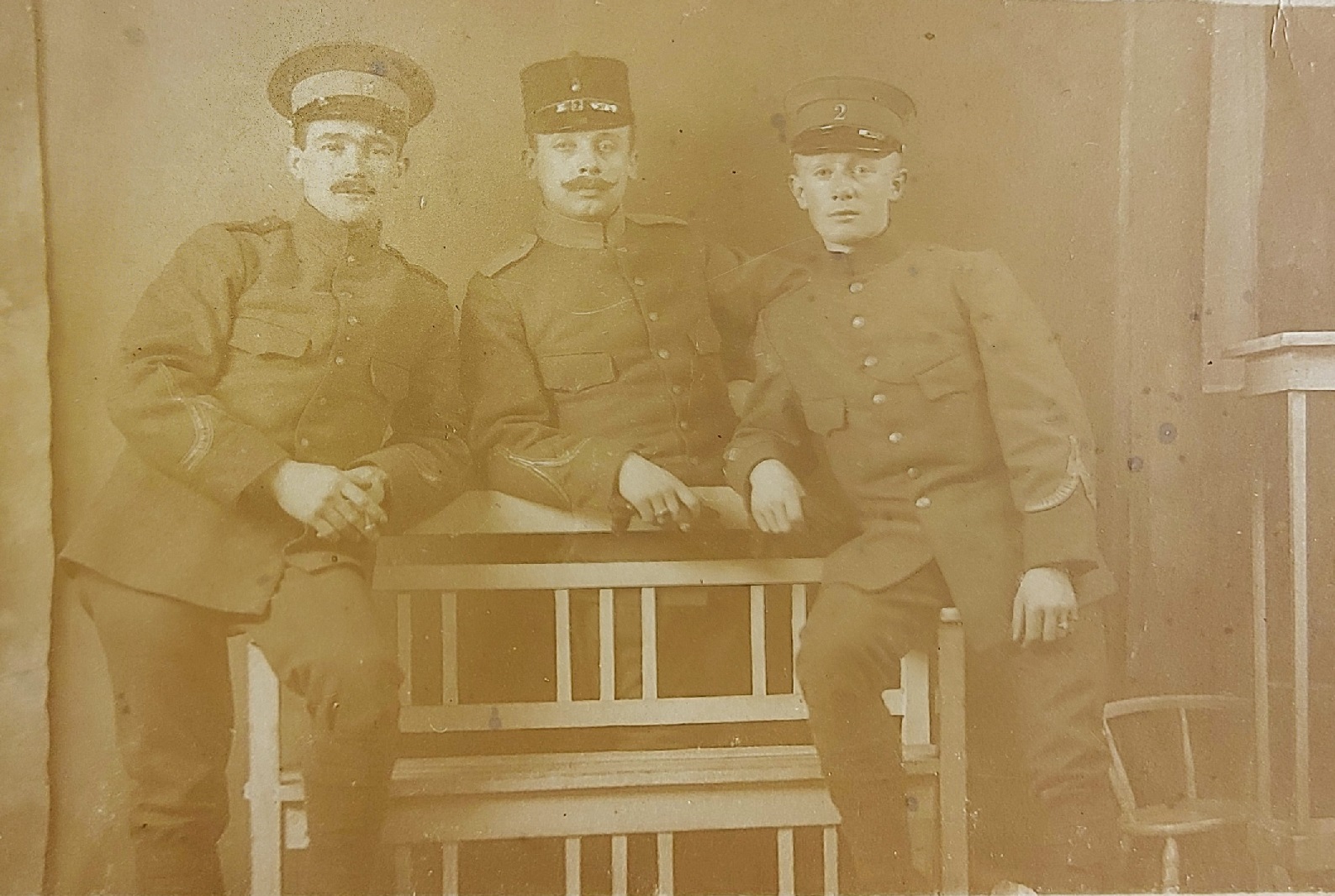 Drie onderofficieren van het 2e regiment Infanterie. Rechts Sergeant van Overdijk.