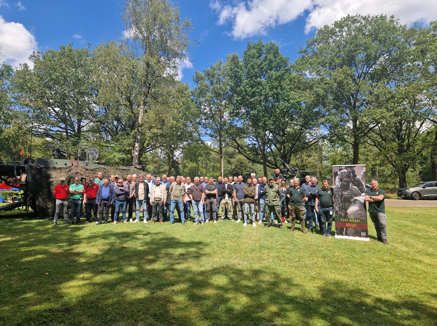 Mooie groepsfoto tussen het moderne materieel.